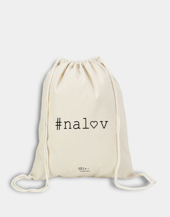 Plátěný stahovací batoh se vzkazem ze série produktů #NALOV.